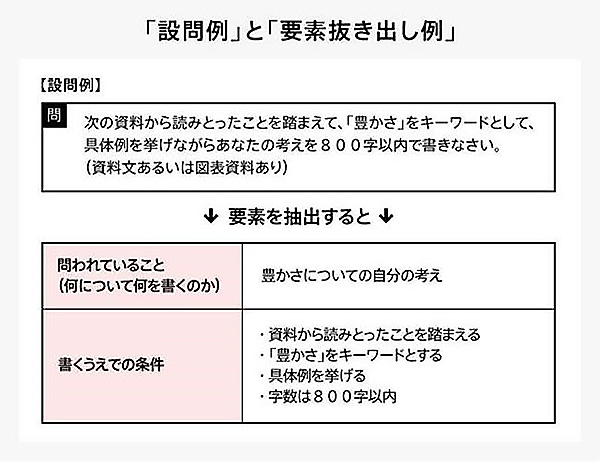 こうした設問条件を十分に満たしていないと、文章としてはよい小論文であっても減点の対象となってしまいます。細かい条件を見落とさないよう、設問を丁寧に読みとることが、得点アップにつながるのです。