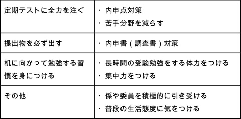 中学1〜2年生は、主に内申書(調査書)対策と3年生からの受験勉強の負担をなるべく減らすための準備を行います。