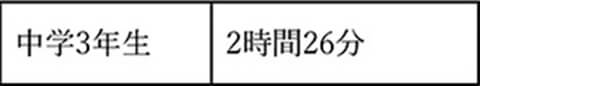 中学3年生の平日の平均勉強時間は、2時間26分。学校の授業やテスト対策以外加えて高校入試対策をする生徒が多いため、中2や高1の平均勉強時間より多くなっているのが特徴です。