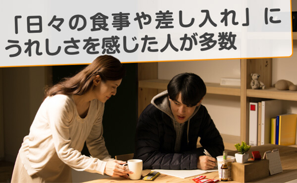 「日々の食事や差し入れ」にうれしさを感じた人が多数