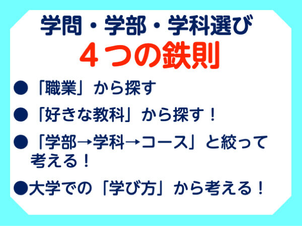 4つの鉄則を基本に、後悔しない学問・学部・学科選びを!
