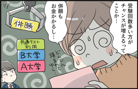私立大学受験はたいてい受験日が複数あり、さらに志望校が1校のみということは少ないのではないでしょうか。となれば、複数の大学、受験日を組み合わせ、何度も入試にチャレンジできる……と言えば聞こえがいいのですが、チャンスの数だけ受験料がかかるシビアな現実。