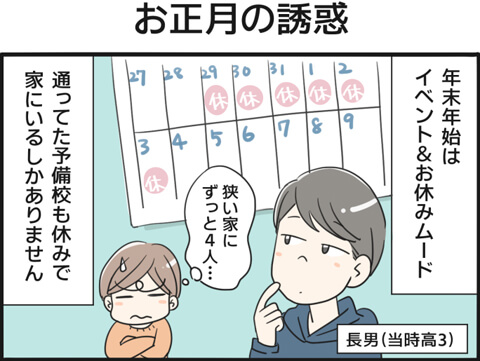 【マンガ】どうなる!? 息子2人の大学受験…イマドキ保護者の悶えるホンネ <第7回>お正月の誘惑