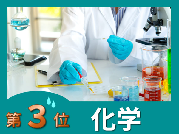 第3位は、21.3%の人がニガテと答えた「化学」です。
