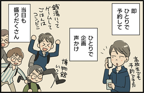 そんな感じで長男の高校生後半は自分の殻に閉じこもりがちで、友人とあまり絡んでいるようにも見えませんでしたが、卒業を機に思い切って友人を旅行に誘いました。旅行といっても地元で軽く一泊、素泊まり、コンビニ飯、散歩と博物館へ行くリーズナブルなものです。これが意外なほど長男の転機となりました。