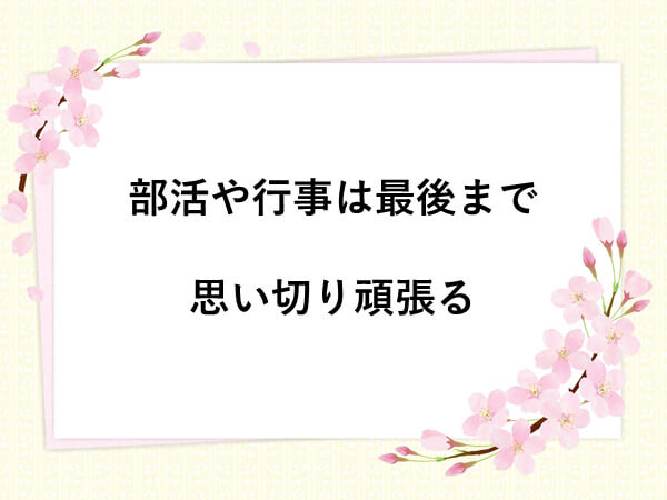 「最後まで思い切りやりきったのだから、このあとは受験勉強をがんばろう」と自然と切り替えられるくらい、完全燃焼できるように応援してあげたいものです。