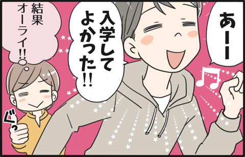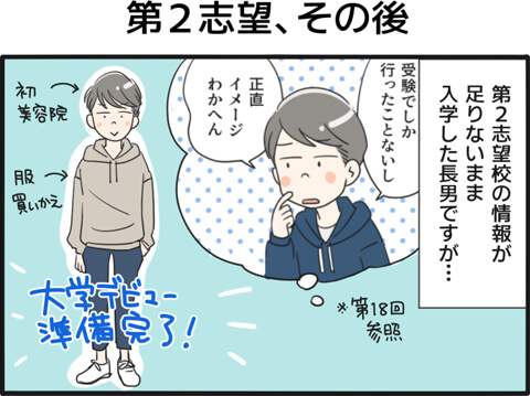 第1であろうと第2であろうと、自分が志望した大学です。どちらに行ったとしても、そこでしか出会わなかった人や、学びや、経験があるのだなあと感じました。不合格のあとはしばらく落ち込みましたが、今の長男は自分の居場所を存分に楽しんでいるように見えるので、今は声を大にして「結果オーライやな!!」と言えますね!