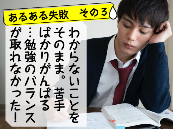 あるある失敗 その3 わからないことをそのまま。苦手ばかりがんばる…勉強のバランスが取れなかった!