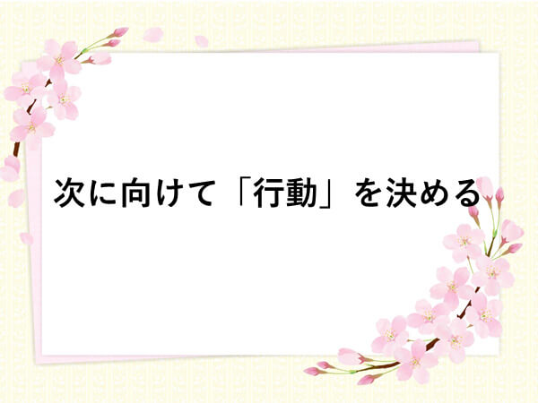 いくら高い目標があっても、行動を変えなければ結果は変わりません。次に向けて何をするか、何をやめるのかを考えることが大切です。