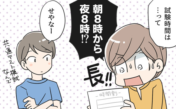 特に共通テスト模試はまるっと1日、残業のようなスケジュールで試験が続きます。