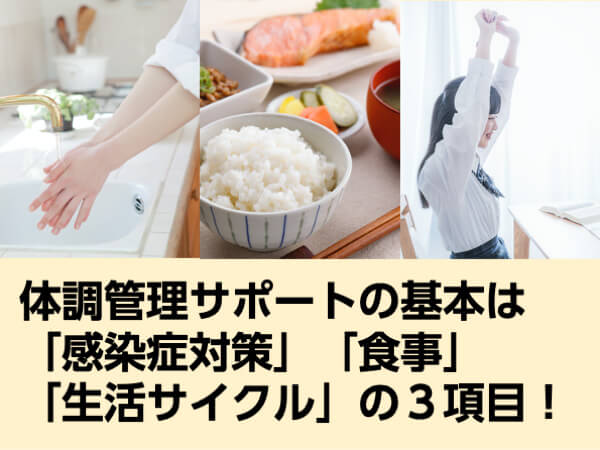 体調管理サポートの基本は「感染症対策」「食事」「生活サイクル」の3項目!