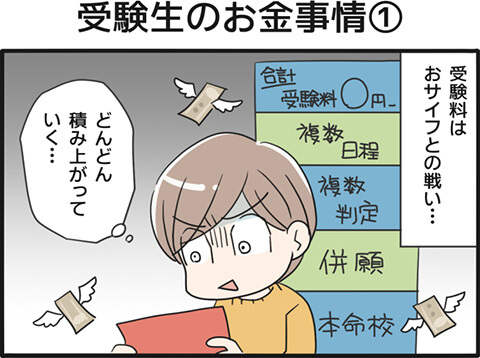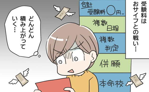 さて、受験生になって跳ね上がる塾代のあとは、チャンスの数だけ増えていく受験料に恐れおののく日々。チケットのように、当たった分だけの支払いならいいのに……なんて、バカなことを考えてしまったり……。