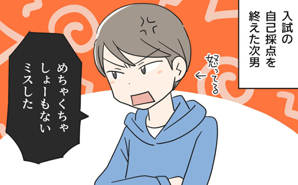 次男は、不甲斐ない時は落ち込まずに自分に怒る性格なので、「あーーーくそーーー!!」と言いながらも笑ってやり過ごしています。本当は辛いんだよね、という気はありません。誰のせいでもなく自分のせいで起こった結果は、自分で処理するしかないと次男はいつも言っていますので……。