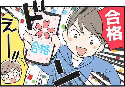 事前に、けっこうな競争率であることがわかっていたので、受かればラッキーかな、くらいに考えていました。次男に、合格発表は自分で確認するから先に見るなと言われたので待機していましたが、結果は合格! 私が合格発表日を1日遅く勘違いしていたせいで、余計びっくりしてしまいました。