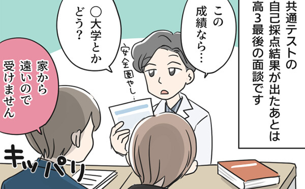 先生は結果を知っているので安全圏の大学を勧めるものの、次男の答えはすべてNO。