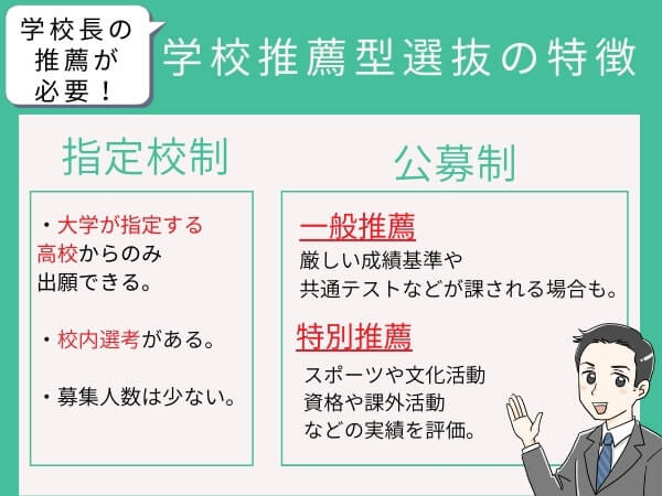 「学校推薦型選抜」には高校の校長先生の推薦が必要。