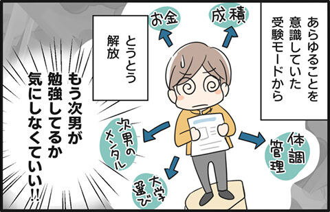 【マンガ】どうなる!? 息子2人の大学受験…イマドキ保護者の悶えるホンネ <第75回>受験生卒業!