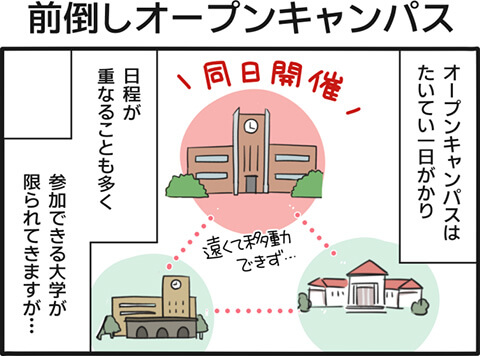 オープンキャンパスは楽しい! イベントも盛りだくさんですし、大学生活を知る貴重な機会です。興味のある大学には1つでも多く参加したいものですが、スケジュールの都合もあり、どうしても参加校が限られてしまいます。