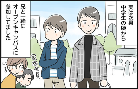 全員がそんな感じなので、長男が高2の時のオープンキャンパスは、当たり前のように家族総出で行きました。もちろん次男も一緒です。