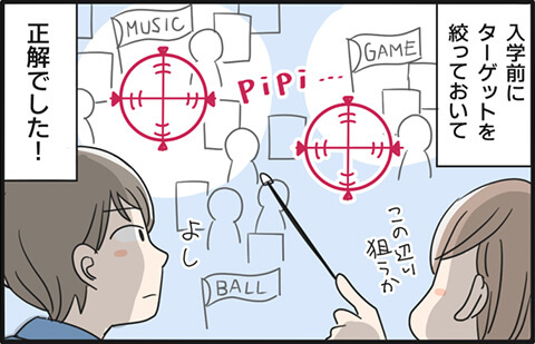 次男の場合は、まず入学前にある程度のジャンル(音楽やゲームなど)を絞りました。その後、大学のホームページやサークルのSNSなどで、自分が興味がある事と合うサークルに目星をつけました。なにしろ細分化されているのでここで決めておくのも重要でした。