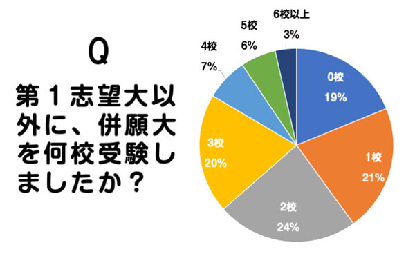また、「1校」と回答した人は21%で、合計すると「併願大は1~3校」という人が約6割という結果に。