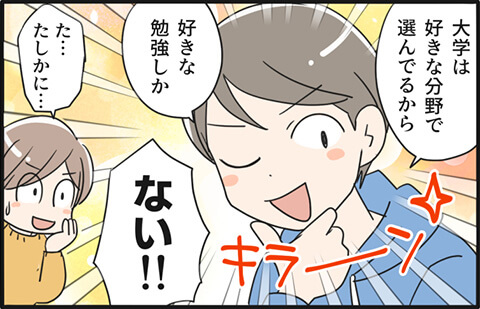 どうやら、勉強嫌いの理由は《やりたくないことをやらなければならないから》だったようです。そういえば受験の後半にも「早く受験勉強じゃない数学や物理をやりたい」と言っていました。共通テストのために全教科勉強することがすこぶる苦痛だったようで……。