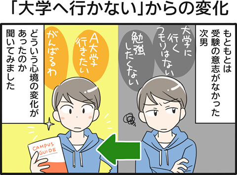 反抗期が続いていた高1から勉強嫌いに拍車がかかり、大学進学の意志がなかった次男。
