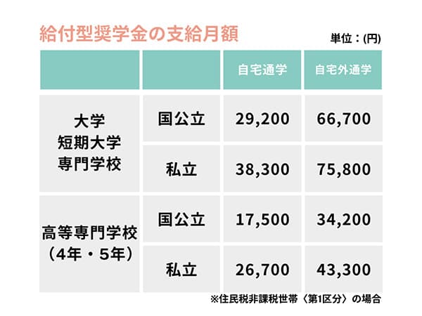 給付型奨学金は「自宅か自宅外か」「国公立か私立か」によって支給額が異なる