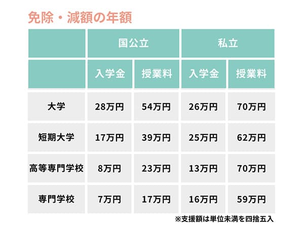 日本学生支援機構の給付型奨学金は、「給付型奨学金の支給」と「授業料・入学金の免除または減額」の2つがセットになっています。