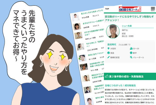 松﨑:進研ゼミの志望大合格コーチ、約450名の受験準備体験談を検索できるサイトです。