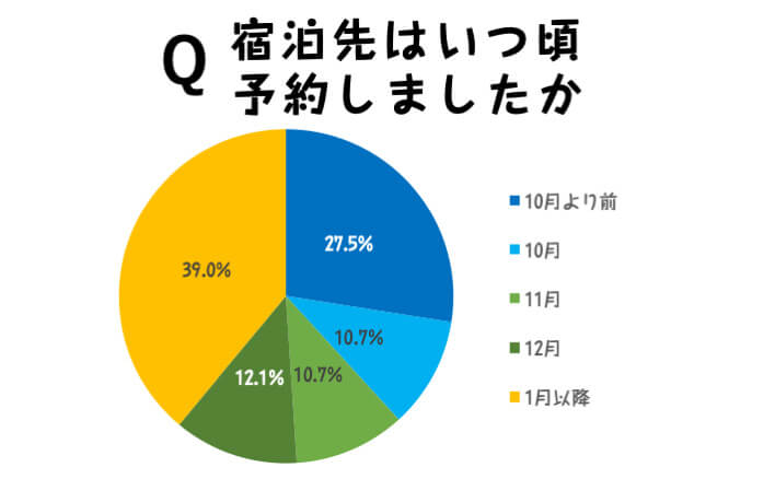 「宿泊先をいつ予約しましたか?」という質問に対して、約39%の人は「1月以降」と回答。