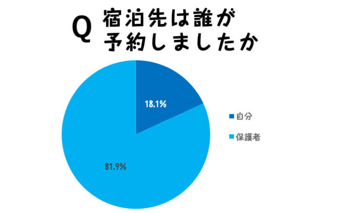 「宿泊先を予約したのは誰ですか?」という質問に対して、約82%の人が「保護者」と回答しています。