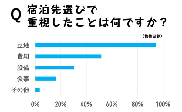 今回のアンケートでは、「宿泊先選びで重視したことは?」という質問も投げかけてみました。