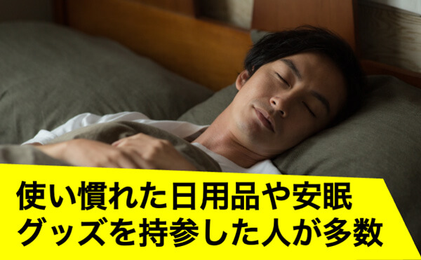 使い慣れた日用品や安眠グッズを持参した人が多数