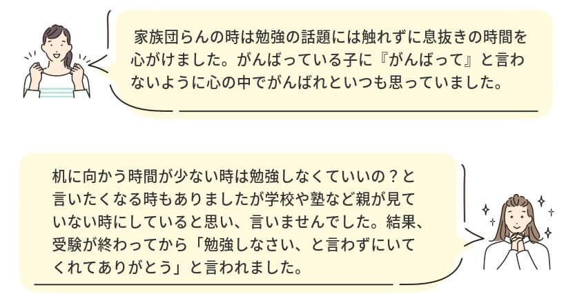 「『勉強しなさい』と言わずにいてくれてありがとう」という受験終了後のお子さまの言葉からは、信じていてあげることの大切さに気付かされます。