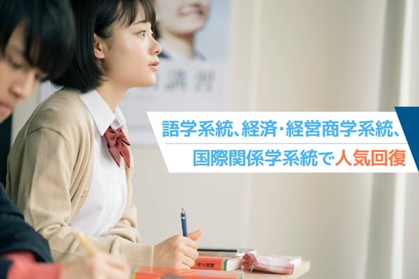 語学系統、経済・経営・商学系統、国際関係学系統で人気回復