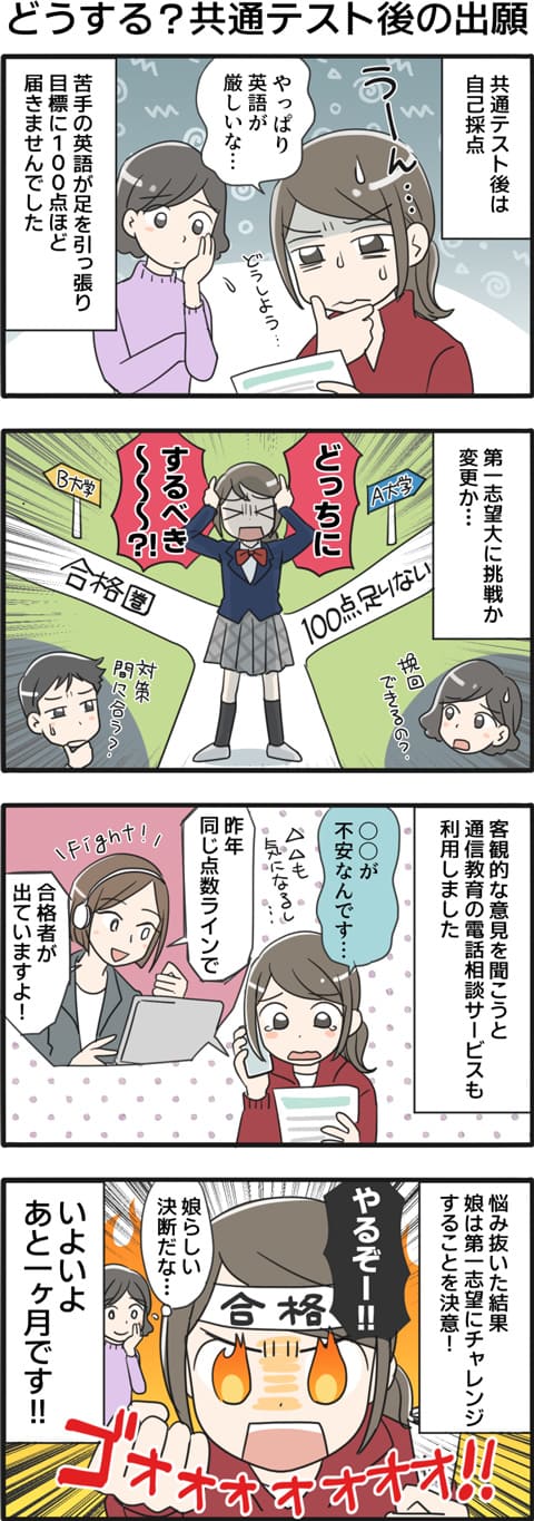 共通テストの結果を受けて、出願大を変えるか、当初の第1志望にチャレンジするかは、本当に悩んでいました。