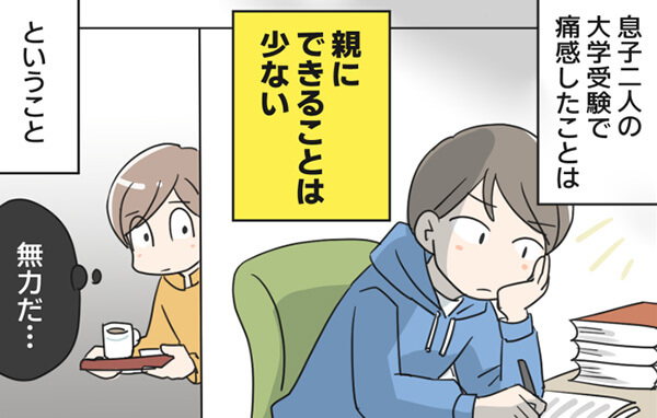 【マンガ】どうなる!? 息子2人の大学受験…イマドキ保護者の悶えるホンネ <第110回>これから受験を迎える人へ
