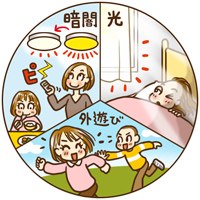 近年、「早寝・早起き・朝ご飯」が大切だとよく言われていますが、塾や習い事で忙しく、早寝をしようと思ってもできない現状もあると思います。また、保護者も仕事などで忙しく、子どもに早寝をさせられない日も多いかもしれません。私自身も「早寝・早起き・朝ご飯」をスローガンにするのは、難しいなと感じています。しかし、「光・暗闇・外遊び」なら、なんとかできそうな気がしませんか? 日中、光を浴びて外遊びして、夜暗い所に身をおけば、自然とメラトニンができて、早寝ができるようになる。そうすると早起きができて朝ご飯も食べられるようになりますし、小学校に入学後も授業に集中できるようになるでしょう。