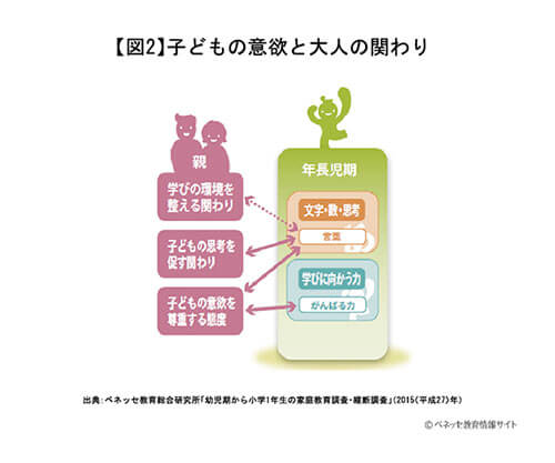 2.年長児期に、親が子どものやりたい気持ちや考える行動を支えるほど、子どもの『がんばる力』や『言葉』は高まる