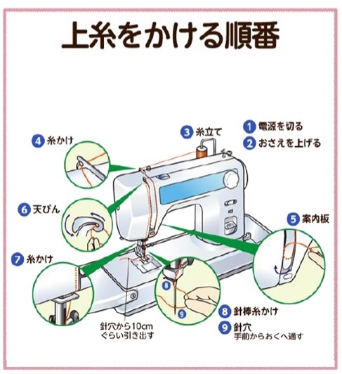 上糸をセットする(※ミシンによっては自動糸かけ機能があります)