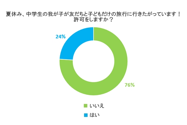 夏休みの間、中学生になる子どもが、自分と友だちだけで旅行に行ってみたいと言った場合、あなたならどうしますか? 今回は、許可すべきかどうかについてアンケートをとってみましたので、もし皆さまも、自分のお子さまがお友だちと一緒に子どもだけで旅行に行ってみたいと言った場合、どうすればいいのか、アンケート結果を参考になさってください。