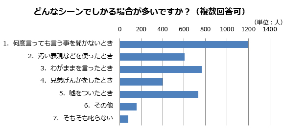 「何度言っても言う事を聞かないとき」に叱るが最多