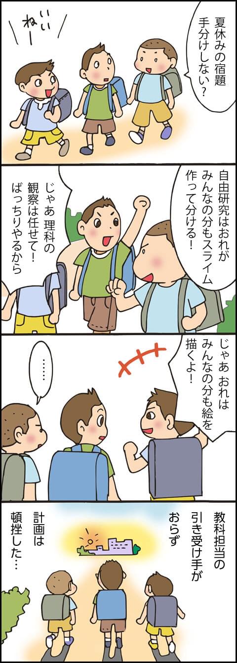 【育児あるあるマンガ】担当者不在? 育児・子育て みんなやりたくない宿題。 マンガ:齊藤 恵 プロフィール 齊藤恵 マンガ家イラストレーター赤ちゃんの遊びBOOK(シリーズ5冊)、NHK Eテレ すくすく子育て 愛情が伝わる!叱り方ほめ方関わりことば26などの書籍のマンガ、イラストを担当 共感した 学びがあった 分かりにくい 育児・子育て 子育て・教育Q&A 【小学生】2018年から学校での英語教育はどう変わるの? 【高校生】問題が解けなかったときに、答えを写すことに意味がありますか? 【小学生】漢字二字の熟語の構成(組み立て)を見分けることができません。見分ける方法はありますか?