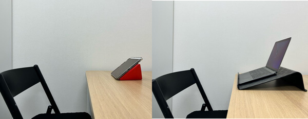 画面の角度を調整できるアイテムを使って、目線を上げられるように工夫しましょう。