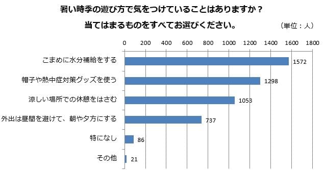 こんなに暑いと、暑さ対策が欠かせませんよね。「暑い時季の遊び方で気をつけていることはありますか」と尋ねてみました。