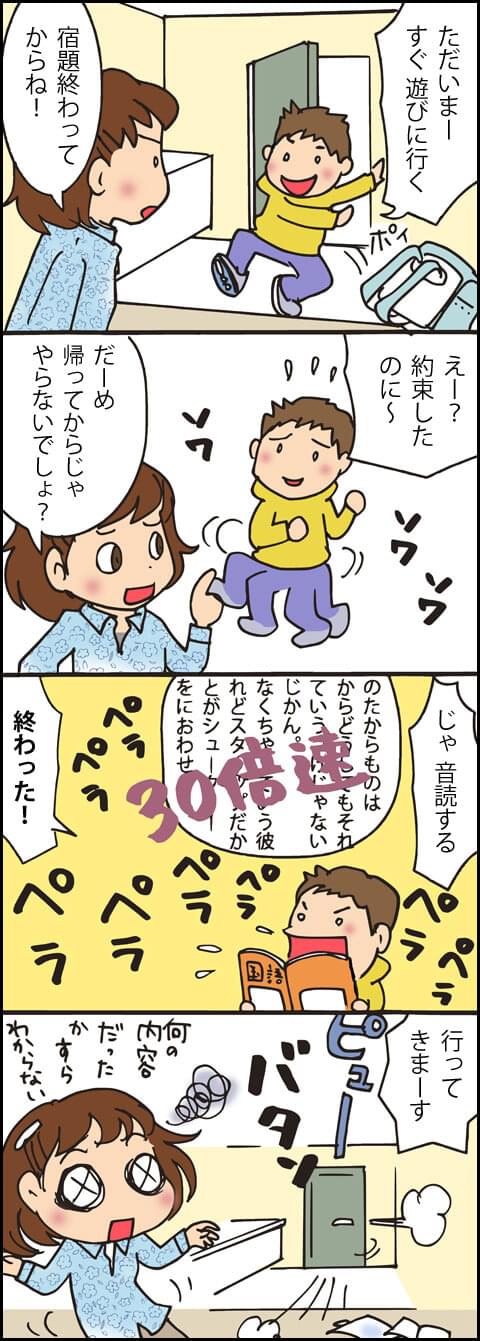 【育児あるあるマンガ】倍速音読 育児・子育て 宿題は早く終わらせたい。 マンガ:齊藤 恵 プロフィール 齊藤恵 マンガ家イラストレーター赤ちゃんの遊びBOOK(シリーズ5冊)、NHK Eテレ すくすく子育て 愛情が伝わる!叱り方ほめ方関わりことば26などの書籍のマンガ、イラストを担当 共感した 学びがあった 分かりにくい 育児・子育て 子育て・教育Q&A 【小学生】2018年から学校での英語教育はどう変わるの? 【高校生】問題が解けなかったときに、答えを写すことに意味がありますか? 【小学生】漢字二字の熟語の構成(組み立て)を見分けることができません。見分ける方法はありますか?