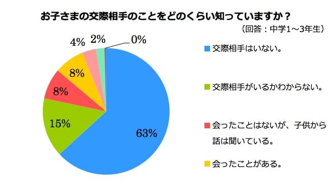 中学生になると、「会ったことはないが、子どもから話を聞いている」が8%に。「会ったことがある」と同じ割合となり、親子でお子さまの交際相手のことを話すようなフランクな関係が想像できますね。