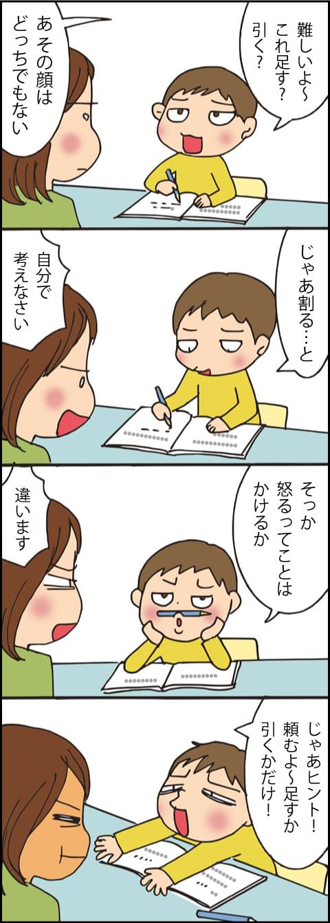【育児あるあるマンガ】表情で解く文章題 育児・子育て 算数指導はポーカーフェースで。 マンガ:齊藤 恵 プロフィール 齊藤恵 マンガ家イラストレーター赤ちゃんの遊びBOOK(シリーズ5冊)、NHK Eテレ すくすく子育て 愛情が伝わる!叱り方ほめ方関わりことば26などの書籍のマンガ、イラストを担当 共感した 学びがあった 分かりにくい 育児・子育て 子育て・教育Q&A 【小学生】2018年から学校での英語教育はどう変わるの? 【高校生】問題が解けなかったときに、答えを写すことに意味がありますか? 【小学生】漢字二字の熟語の構成(組み立て)を見分けることができません。見分ける方法はありますか?