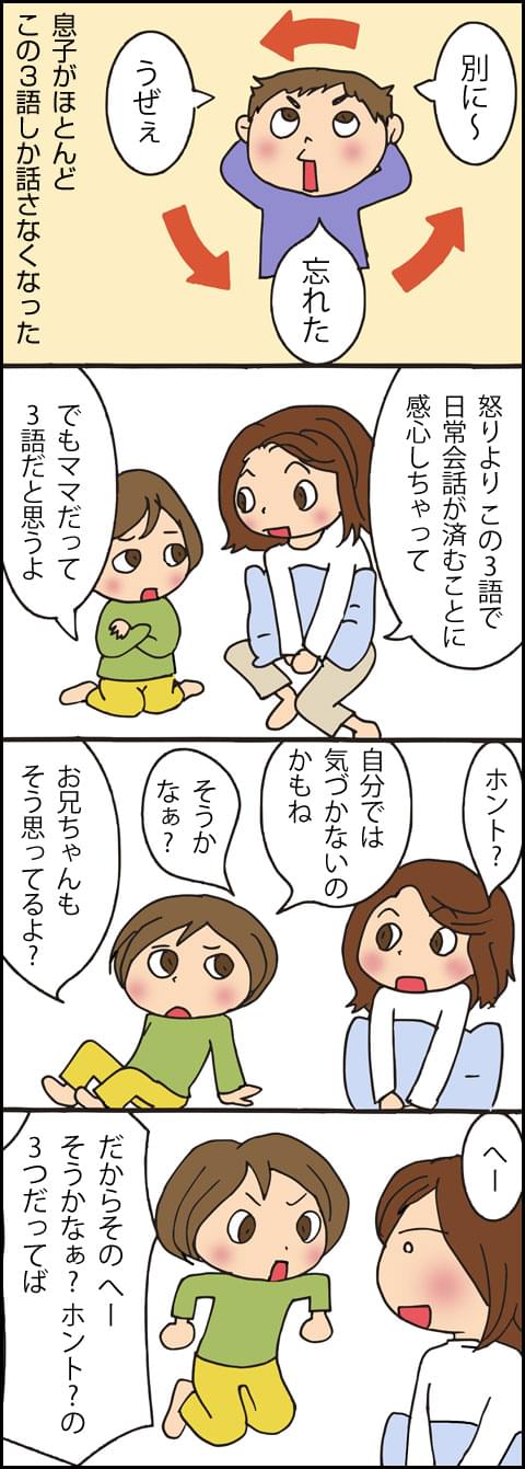 【育児あるあるマンガ】3語使い回し 育児・子育て それでも成り立ってるから不思議。 マンガ:齊藤 恵 プロフィール 齊藤恵 マンガ家イラストレーター赤ちゃんの遊びBOOK(シリーズ5冊)、NHK Eテレ すくすく子育て 愛情が伝わる!叱り方ほめ方関わりことば26などの書籍のマンガ、イラストを担当 共感した 学びがあった 分かりにくい 育児・子育て 子育て・教育Q&A 【小学生】2018年から学校での英語教育はどう変わるの? 【高校生】問題が解けなかったときに、答えを写すことに意味がありますか? 【小学生】漢字二字の熟語の構成(組み立て)を見分けることができません。見分ける方法はありますか?